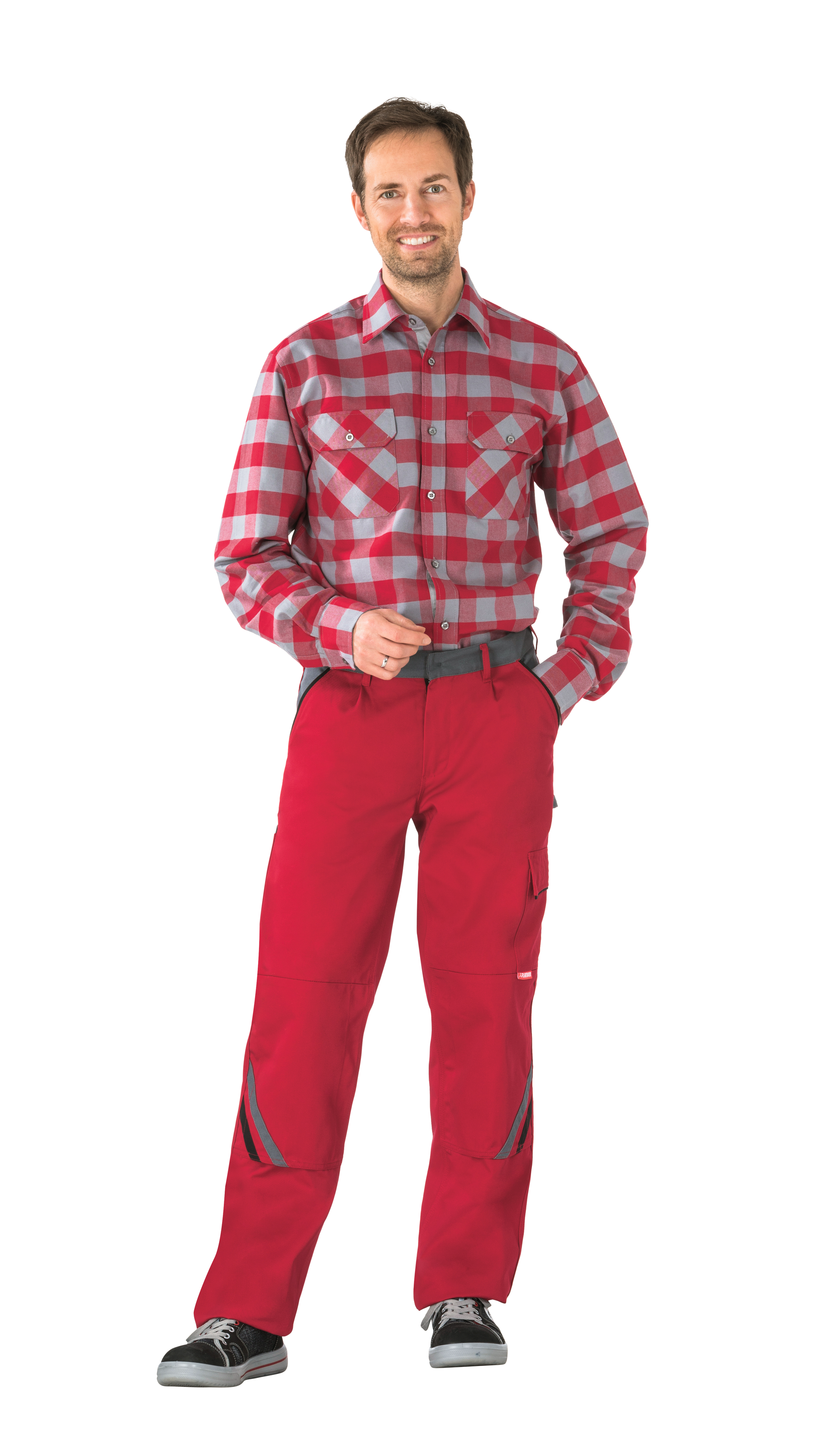 - 2 aufgesetzte Knietaschen mit farbigen Applikationen