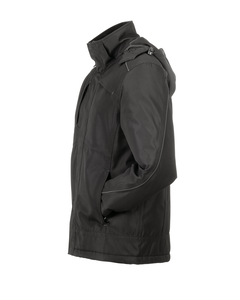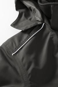 - Kapuze im Kragen, einrollbar mit Verstellmöglichkeiten