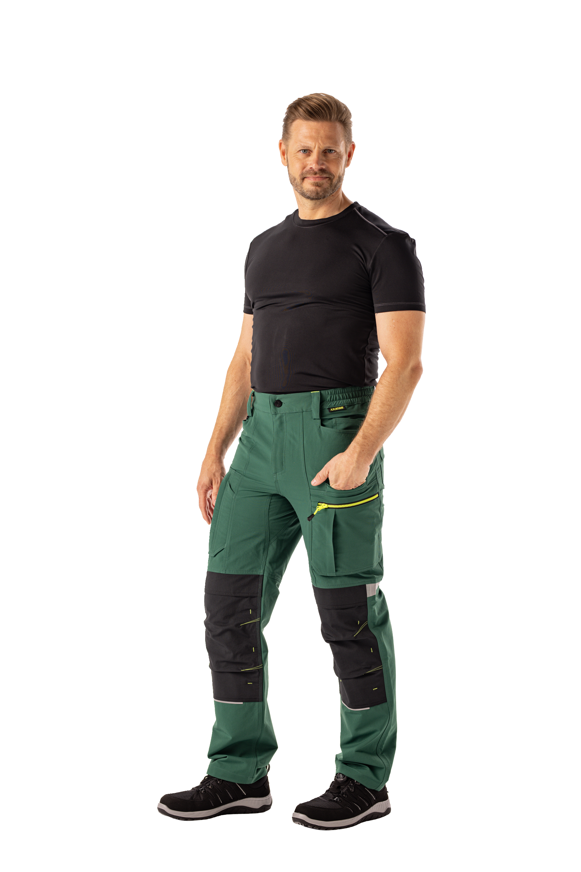2 Gesäßtaschen, rechte Gesäßtasche mit Patte und Reflexapplikation