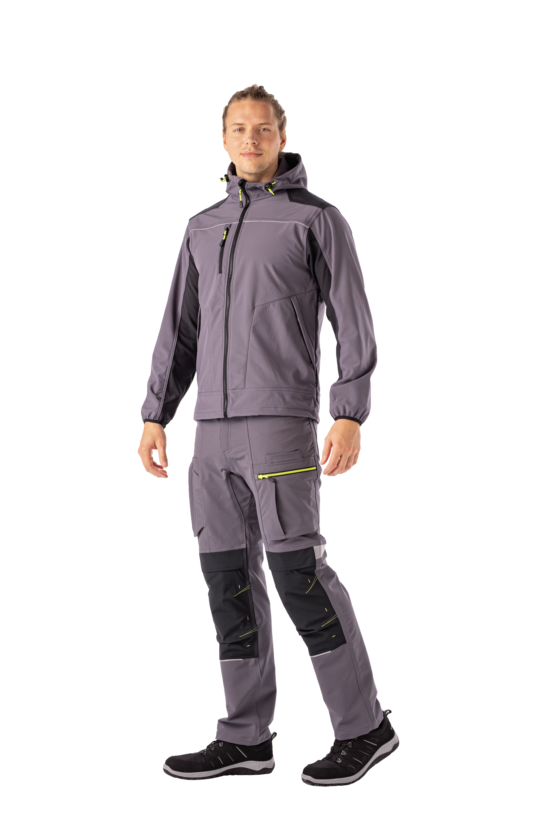 94 % Polyester (recycled), 6 % Elastan (TPU-Membrane, ca. 300 g/m2)