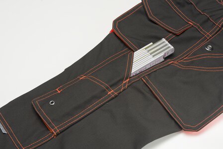 - poche sur cuisse avec rabat et bouton-pression à gauche